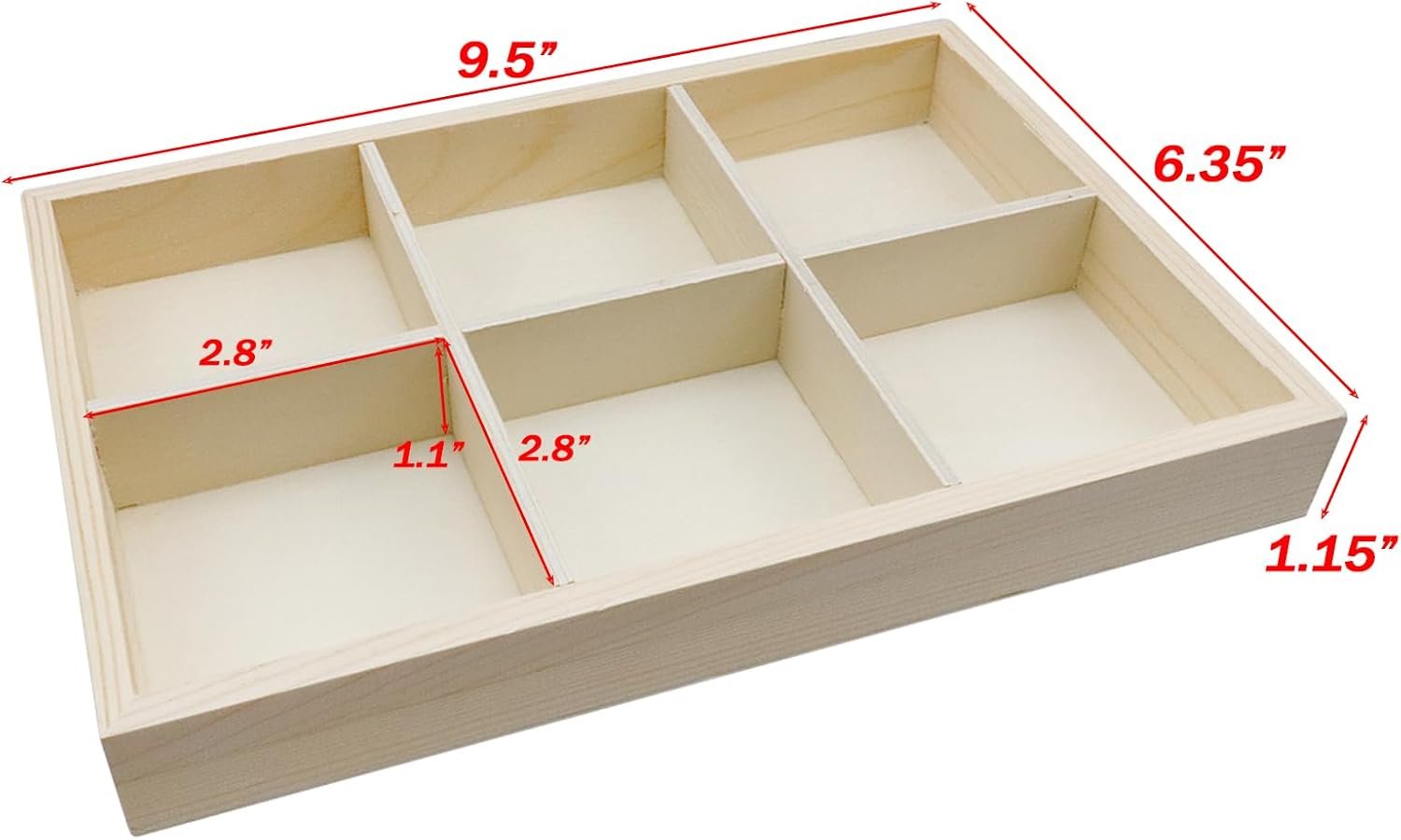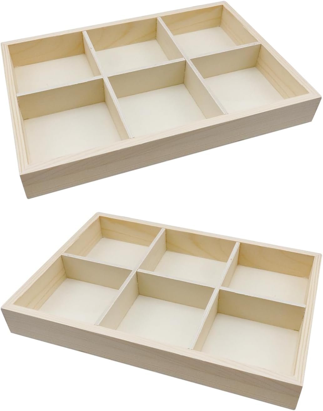 6 Grids Wooden Jewelry Tray 2.8 Inch Compartment Showcase Display Case Handicraft Storage Box Art Tool Box Drawer Organizer 2Pcs